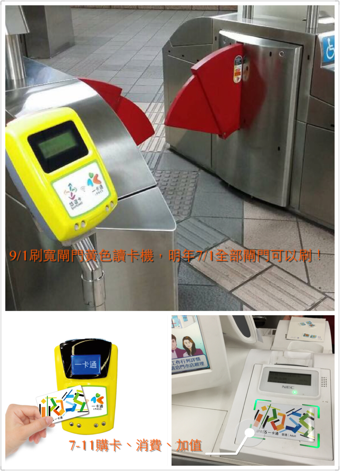 北高捷運互通經過漫長的談判終於有具體成果,一卡通在9月1日可以在北捷使用,但僅限在寬閘門黃色讀卡機,明年七月北高捷運將全閘門開放多卡通。藉電子票證良性競爭把餅做大,共同努力降低國內每年6.5兆現金使用量,讓經濟活動更有效率。