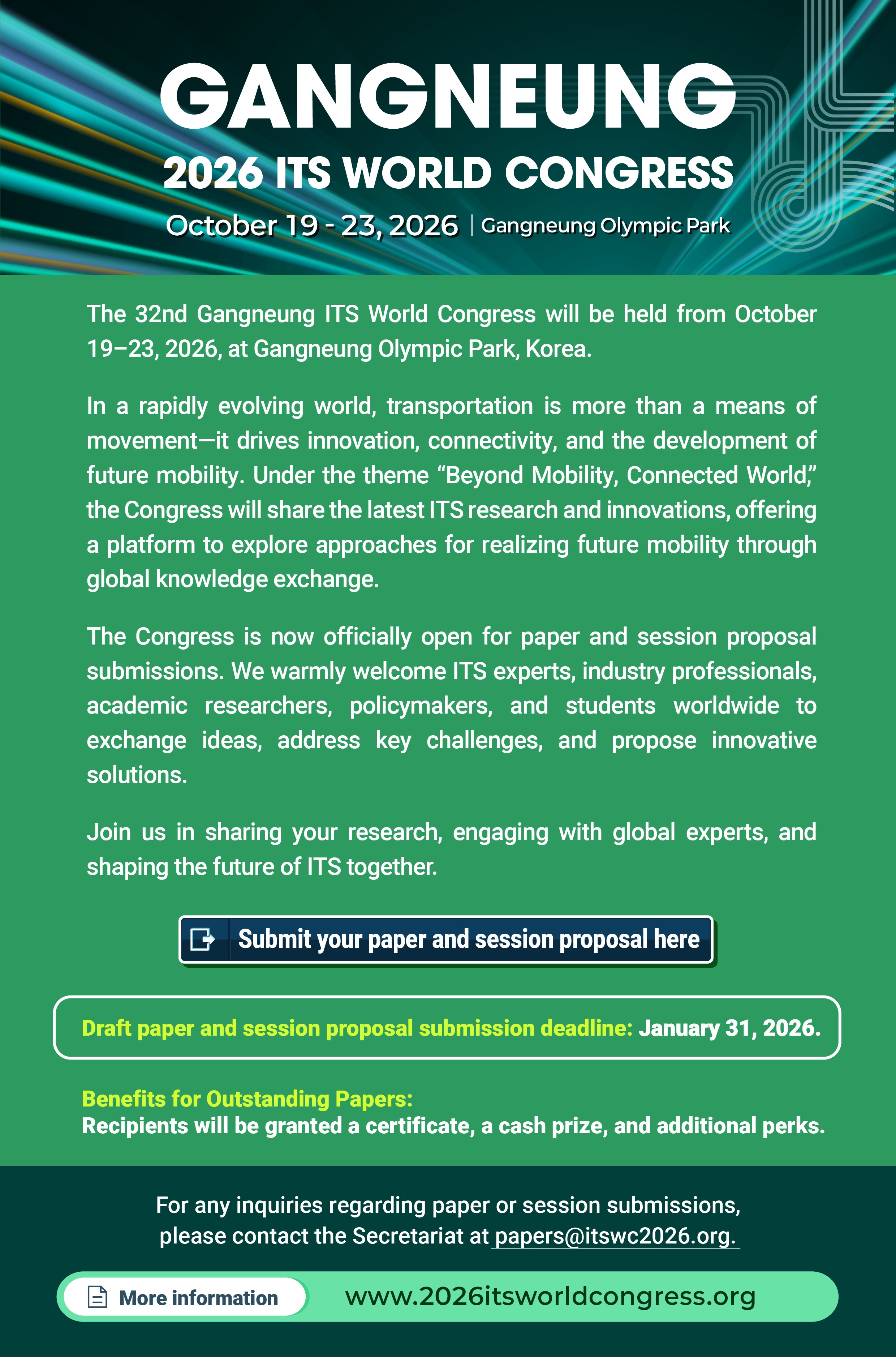 ITSWC2026訊息-「2026年韓國江陵第32屆ITS世界大會」於2026年10月19~23日舉行 開始論文徵求及場次提案徵求